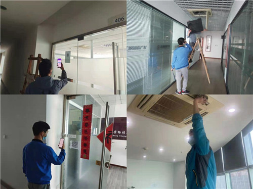 因适逢疫情期间,此次清洗工作严格要求空调维保单位工作人员分别扫各楼栋及企业门铃码并核验两码测温后进入各楼栋开展清洗内机作业。