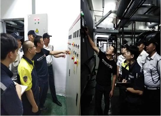 培训中,专业空调维保人员围绕中央空调的系统分类、系统组成、冷冻主机操作以及系统管理与维护等内容,向大家进行现场讲解。通过专业系统的培训,特别是空调系统工作原理、操作要点、维护过程中的重要主要事项及判断故障等要点的实操演示,操作人员对园区中央空调系统有了充分认识。现场教学互动气氛热烈,大家一路走、专心听、认真记。