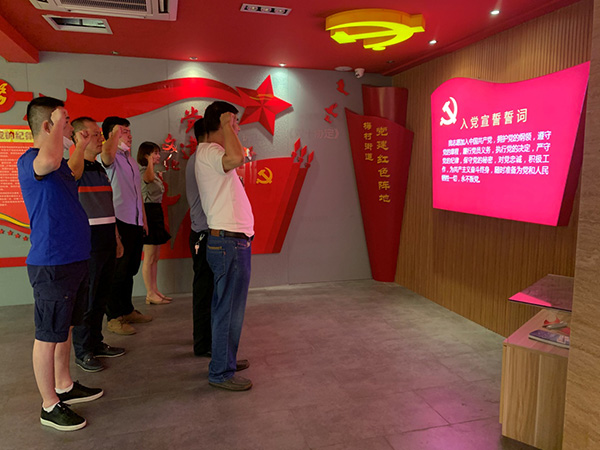 在新四军江抗东进纪念馆内,大家通过观看文献资料、历史图片、珍贵实物,学习了新四军深入苏南东路地区,在地方党组织和人民群众的大力支持下,与日伪军进行殊死战斗,创建苏南抗日游击根据地的英勇壮举、抗日军民的英勇气概和献身精神。随后,由支部副书记领誓,大家共同重温了入党誓词。