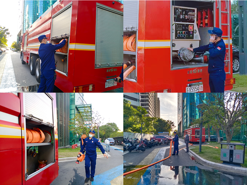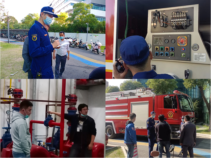 本次行动主要针对消防对讲通信及消防泵加压进行测试。检测前,消防大队人员和物业人员搭配成组,在地下室水泵房、楼顶、消防车各设立点位,大家相互配合统一听指挥,经检测,园区对讲通信地面和楼面通信正常,地下室与地面对讲通信无异常。随后,消防大队消防车连接消防结合器对园区消防管网加压,经测试,最不利点压力值也符合标准。行动圆满完成,达到了“人员、器材、要素、效果”四落实。